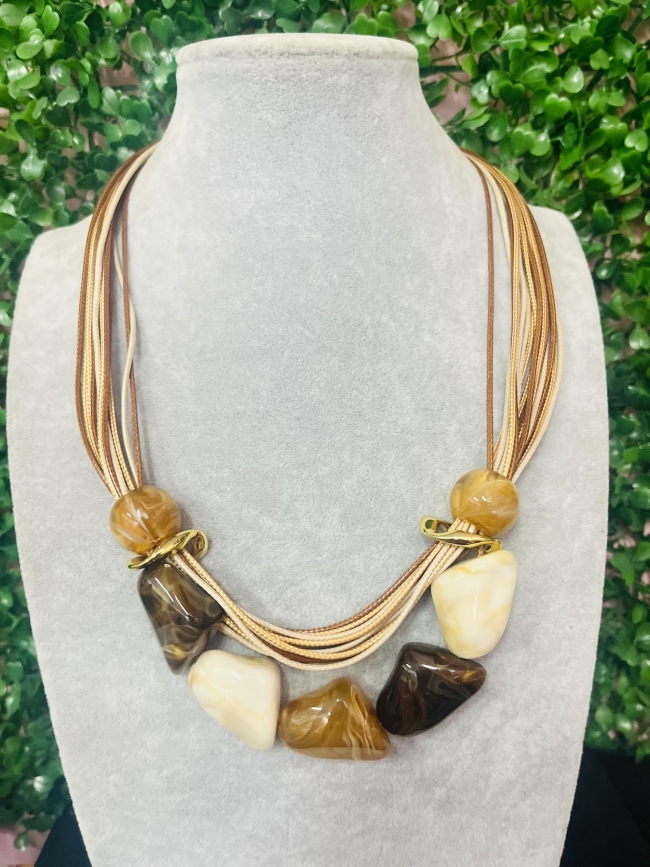 • COLAR MEDIO CORDAO E PEDRAS RESINA