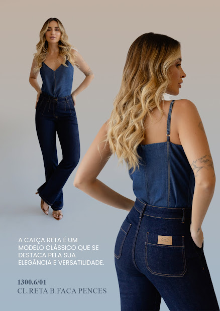 • CALÇA JEANS RETA BARRA A FIO