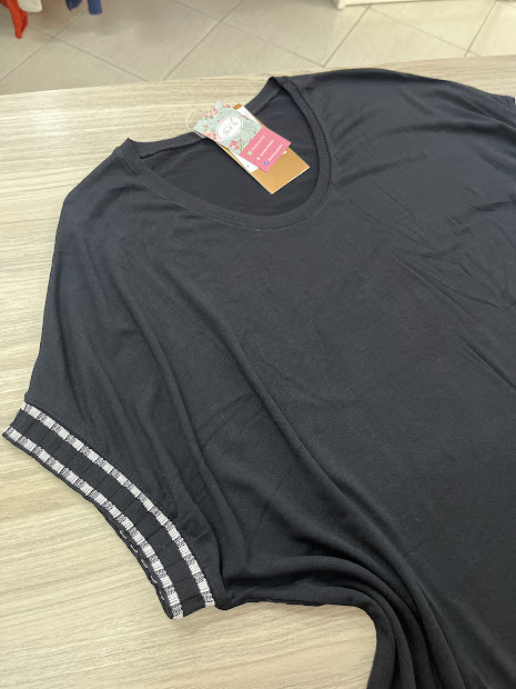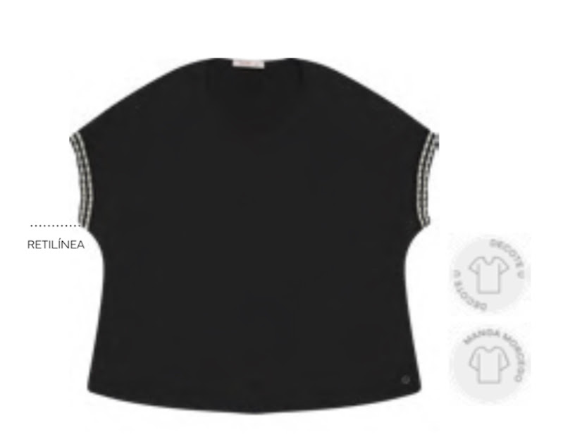 Blusa plus em malha viscotricot com manga morcego e detalhe diferenciado na barra, que traz um toque moderno e delicado ao visual. Confortável e versátil, é a peça ideal para compor looks casuais ou mais arrumados.