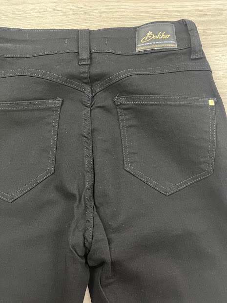 Calça bootcut confeccionada em sarja preta com elastano, que proporciona conforto, flexibilidade e ótimo caimento.