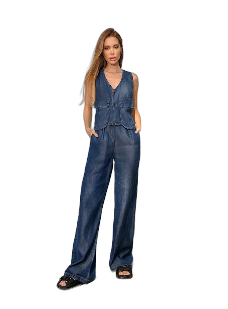 Calça reta em liocel com modelagem elegante e caimento leve.