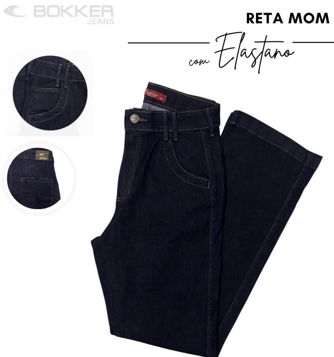 Calça reta tradicional confeccionada em jeans escuro amaciado com elastano, proporcionando conforto e excelente caimento.