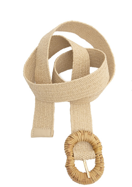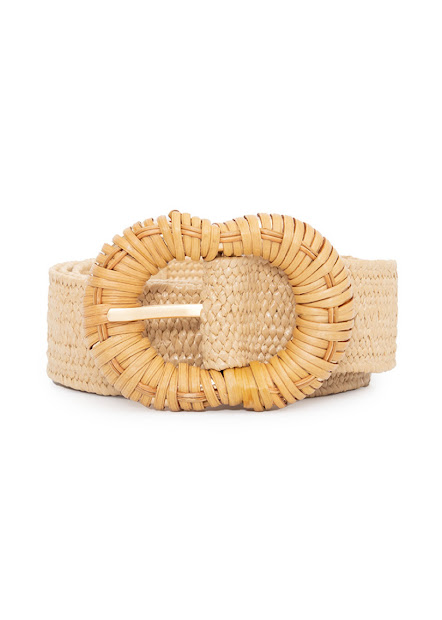 Cinto com fivela inspirada em palha e parte posterior em elástico, unindo charme natural e praticidade para ajustar com conforto e estilo.