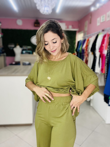Conjunto em malha crepe com modelagem ampla, que une conforto e sofisticação.