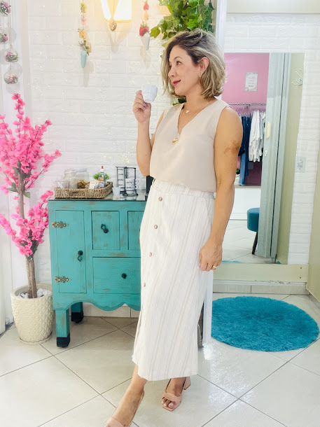 * Para adquirir a blusa da foto para compor o conjunto, consulte a disponibilidade na aba Roupas / Blusa / Regata de linho