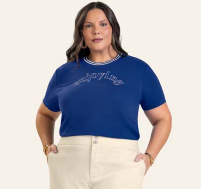 Saia plus size mídi em tecido piquet, malha encorpada e textura macia.
