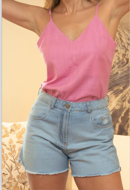 Confortável e fresco, ideal para dias quentes e produções casuais.