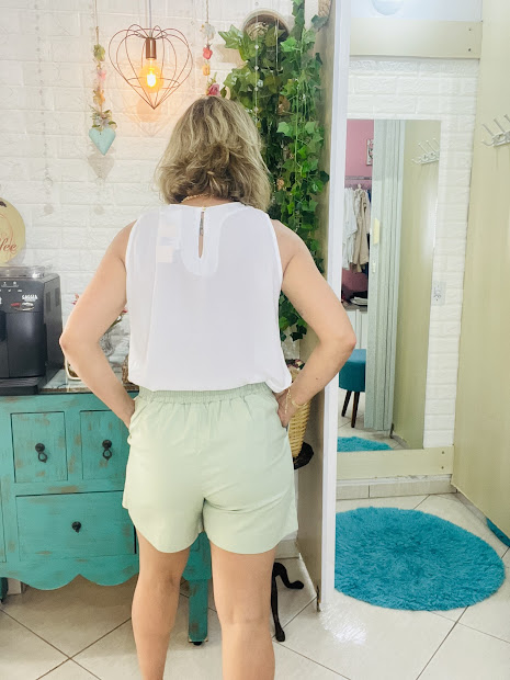 Shorts saia confeccionado em linho com elastano, proporcionando leveza, conforto e caimento natural.