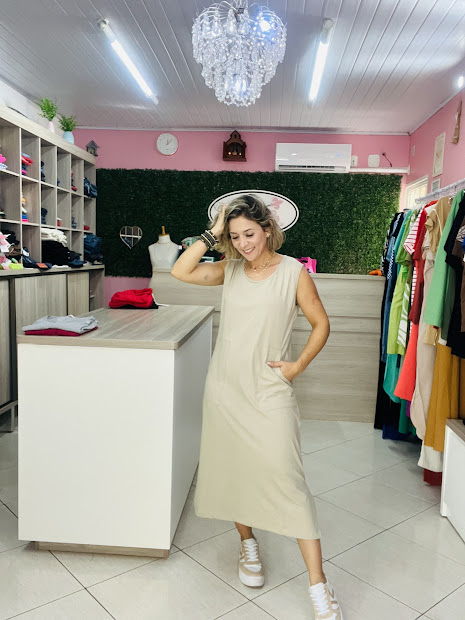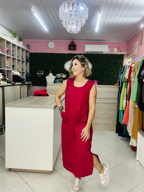 Modelo sem mangas, com decote redondo e caimento soltinho que valoriza diversos tipos de corpo.