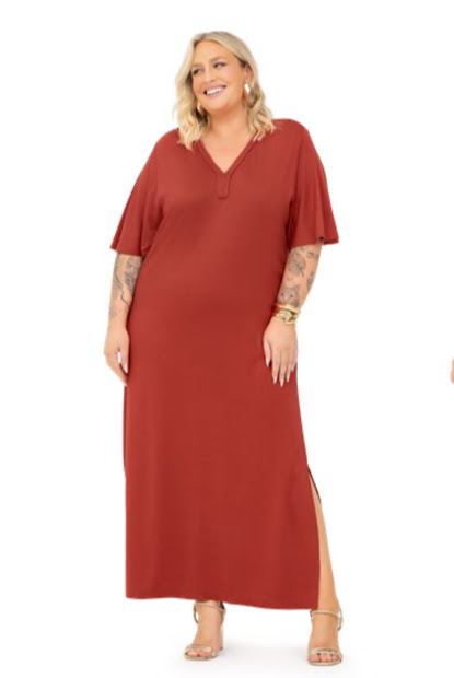 Vestido plus size longo em viscose creponada, leve e com ótimo caimento.