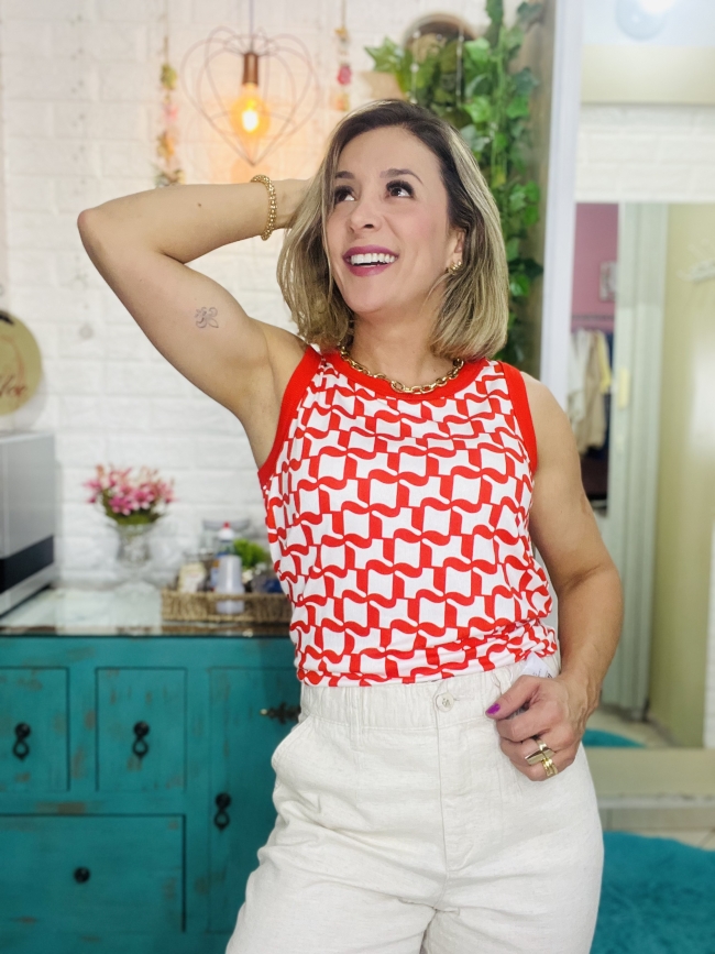 • REGATA DE CREPE PREGAS ESTAMPADA